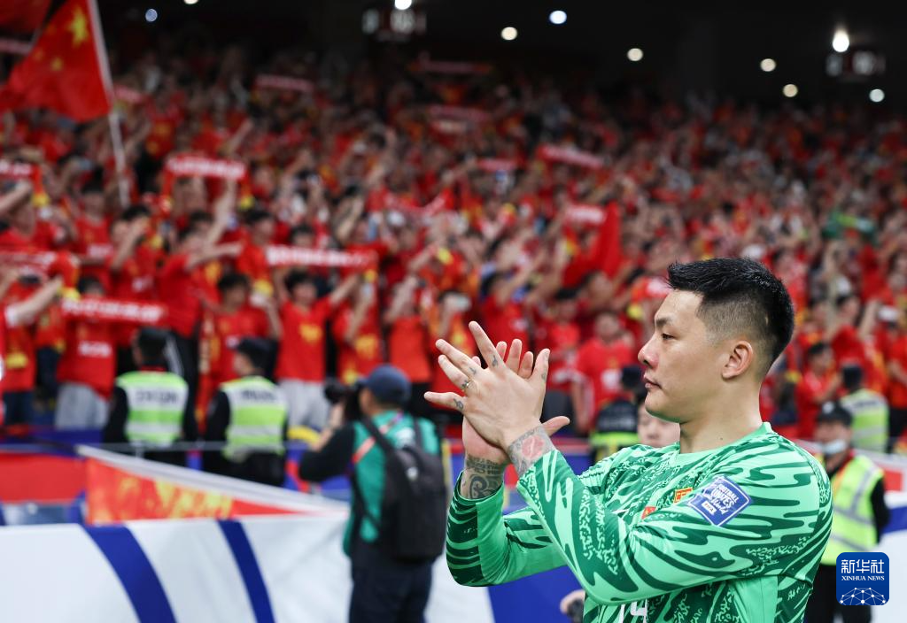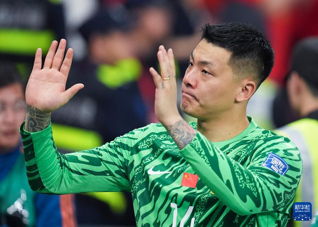 3月25日,中国队守门员王大雷赛后向不雅众请安。