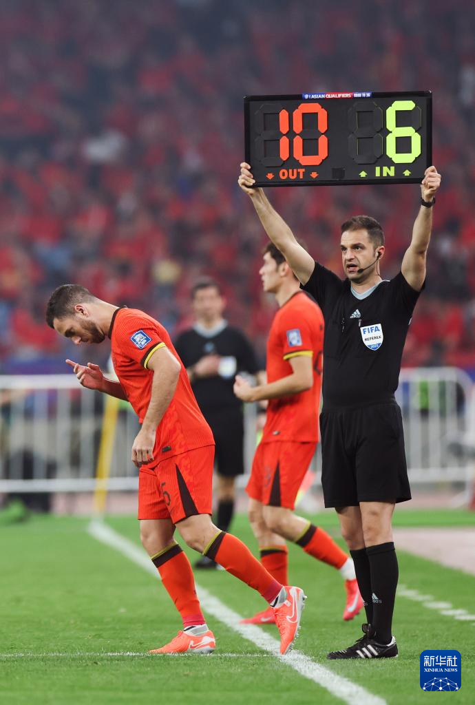 3月25日,中国队球员张玉宁被替换下场后。