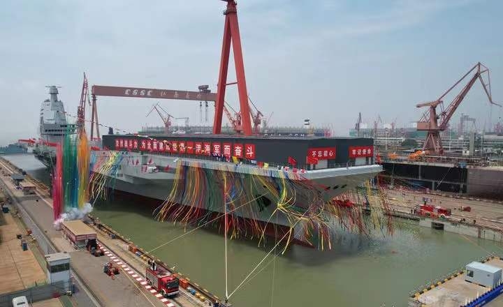 6月17日上昼,我国第三艘航空母舰下水定名典礼在中国船舶集团有限公司江南造船坞举行。经中央军委批准,我国第三艘航空母舰定名为“中国东说念主民摆脱军舟师福建舰”,舷号为“18”。福建舰是我国透顶自主筹备建造的首艘弹射型航空母舰,接收平纵贯长飘零船面,成立电磁弹射和窒碍装配,满载排水量8万余吨。该舰下水后,将按指标开展系泊磨砺和飞翔磨砺。