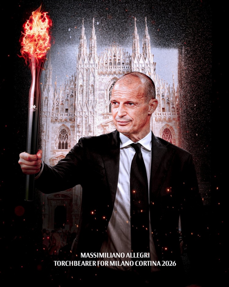 米兰官方社媒晒出海报,证实阿莱格里将成为2026年米兰冬奥会火把手,并对阿莱格里暗示道贺。