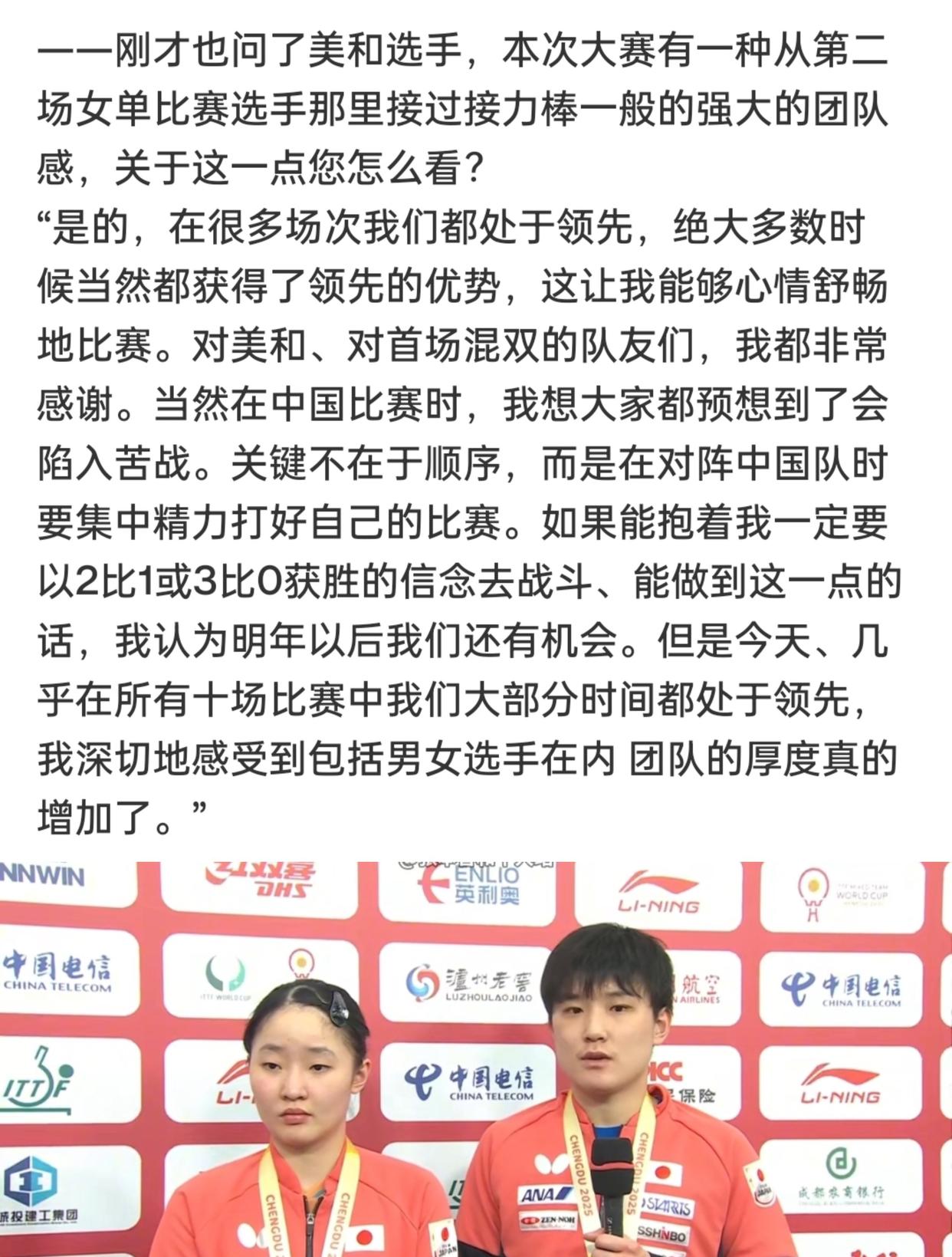 张本智和说:“如果能抱着我一定要以2比1或3比0告成的信念去拼,我认为来岁之后咱们如故有但愿的。”