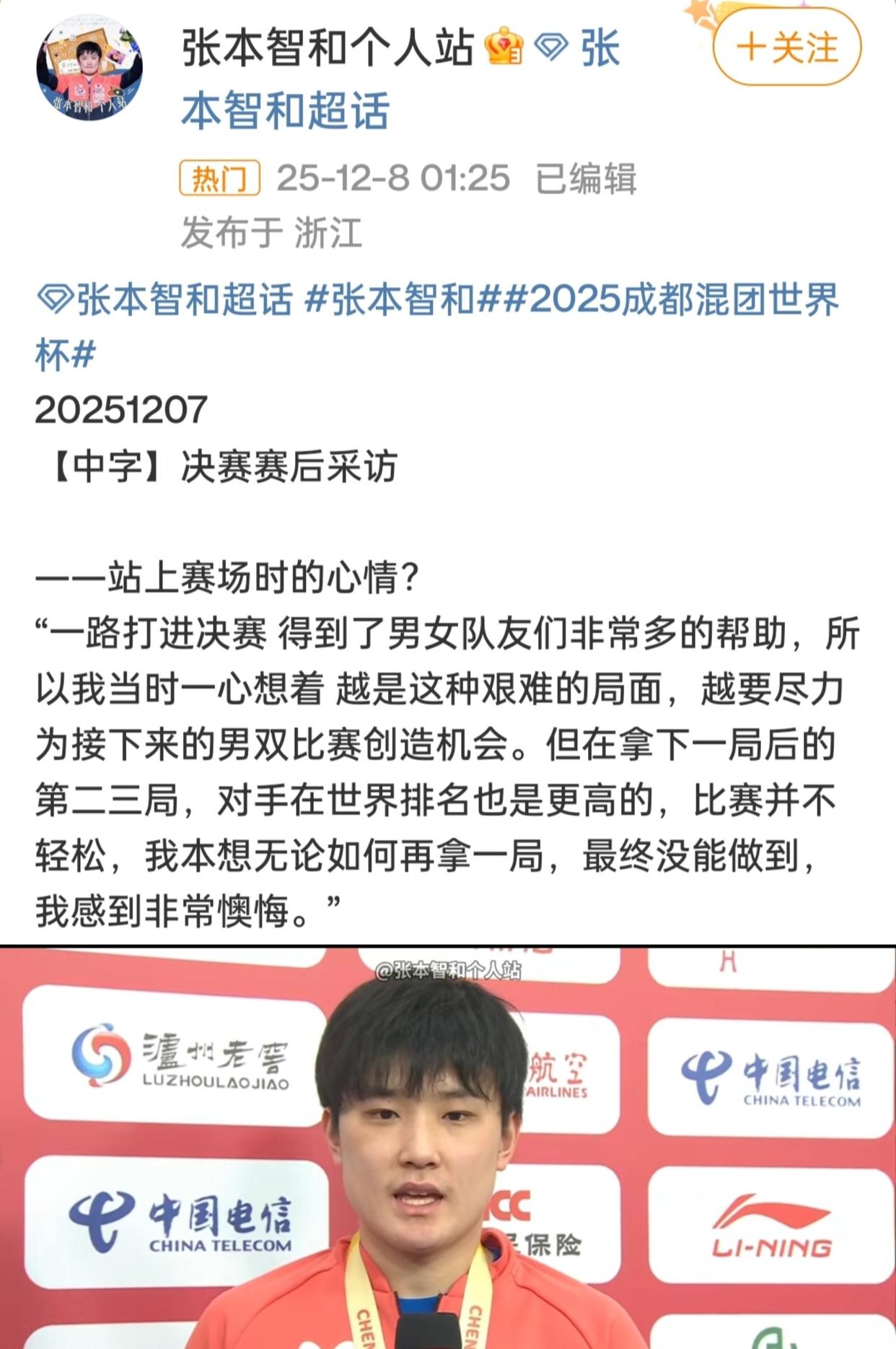 比赛收尾后,张本智和用“憎恨”这个词,抒发了我方对这场比赛中一些不实感到缺憾和后悔。
