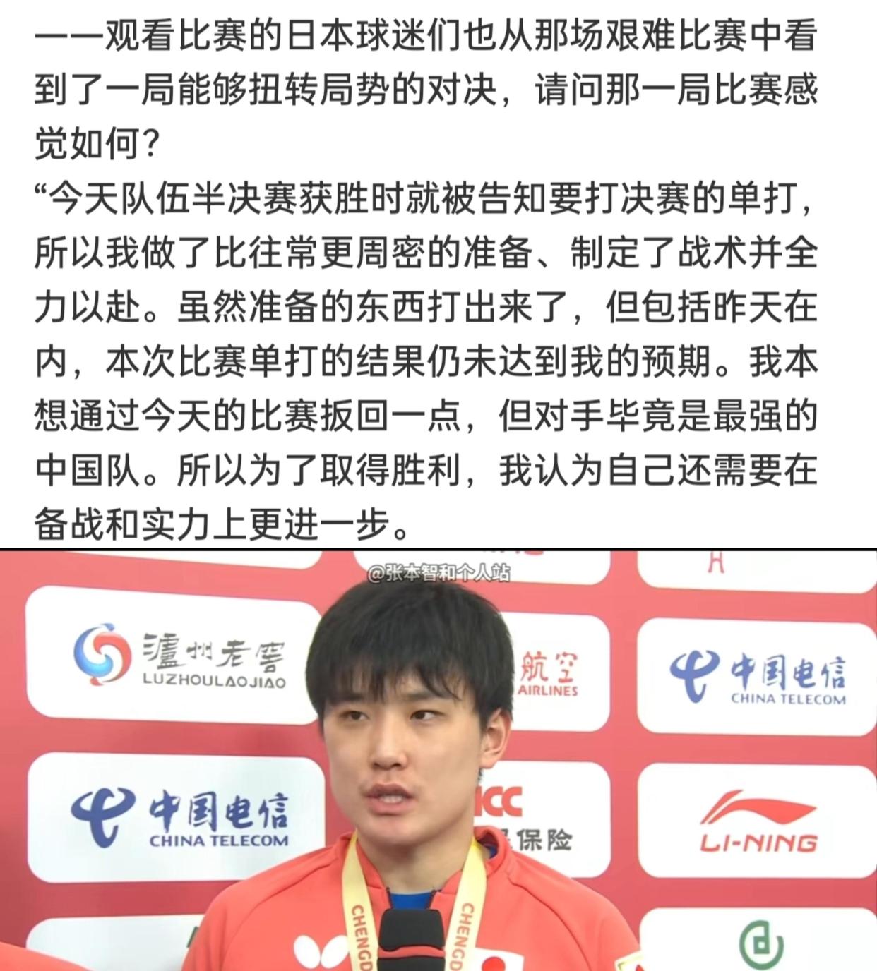 张本智和大致是在聊跟其他队列的比赛时,我方也曾伊始过,但是在跟中国队一拼的时候,就堕入了鏖战,不像昔日那么凯旋。