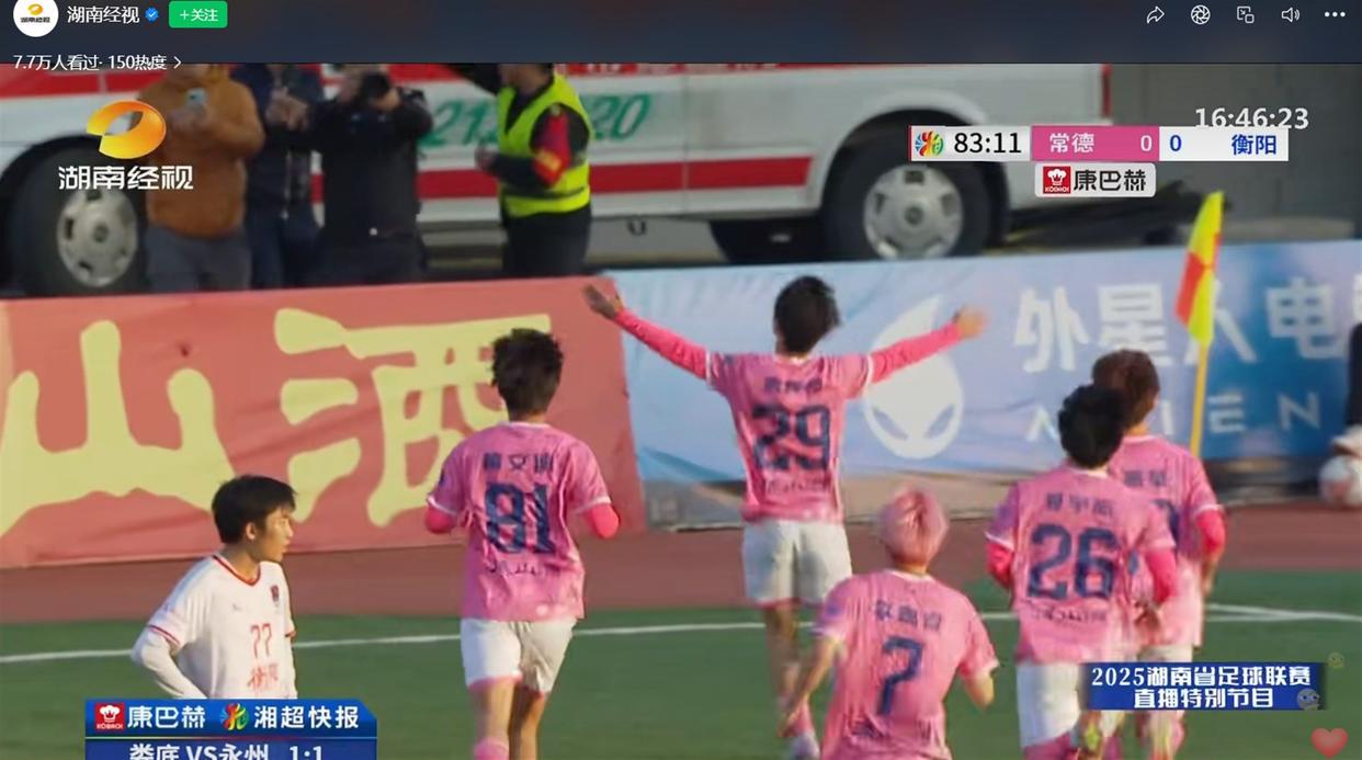 湘超焦点战!常德队83分钟绝杀衡阳,赵文荻妙传袁晖凯一槌定音