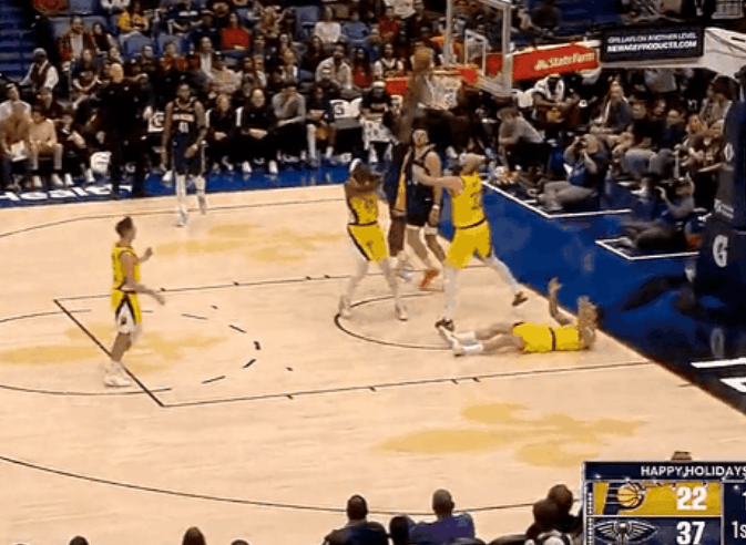 蔡恩篮下双手补扣笔直,鹈鹕首节特出步行者17分