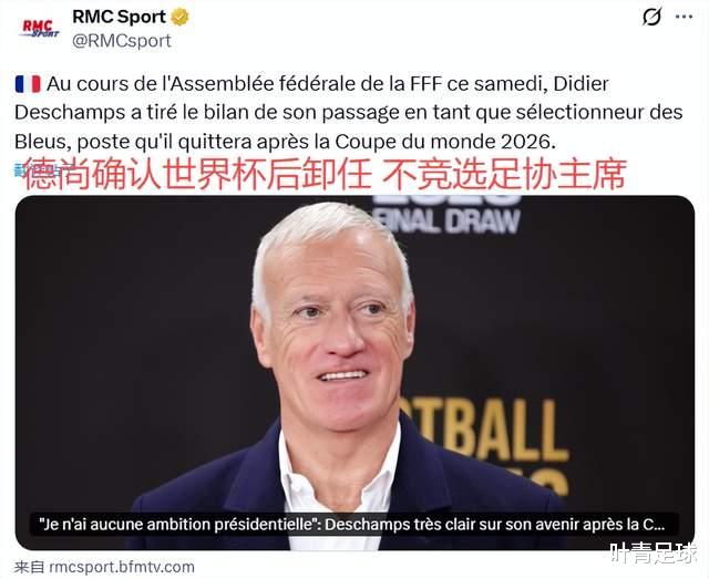 2026年寰球杯之后,德尚将不再担任法国队主帅,王人达内交班——这险些是全寰球的共鸣。12月13日,法国足协联邦大会上,57岁的德尚亲口证据:带完好加墨寰球杯,他将交出法国帅印。德尚还默示,我方对竞选足协主席不感趣味,这不是他的翌日计算。