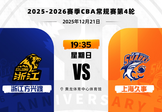 2025年12月21日,2025-2026赛季CBA联赛惯例赛第4轮,上海久事客场挑战浙江方兴渡。