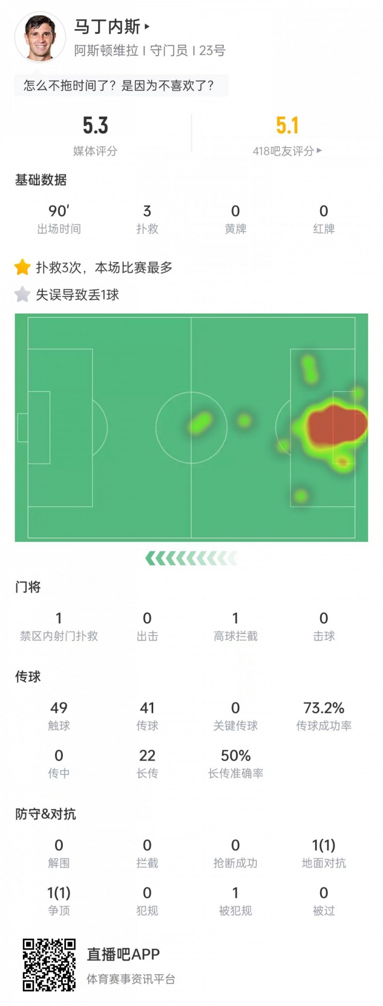 马丁内斯本场数据: