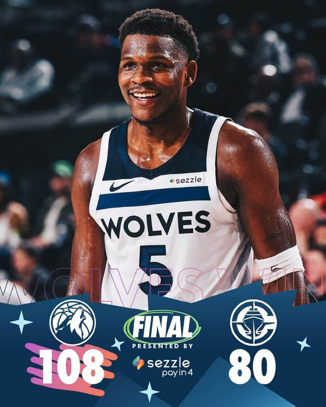 第一节,比赛就朝着一边倒的地点发展,快船单节仅获得14分,逾期19分为止首节。第二节,丛林狼再打出热潮将分差拉大到二终点以上,丛林狼逾越27分为止上半场。下半场,丛林狼将分差拉大到三终点以上,比赛早早插足垃圾时间。最终,丛林狼108-80大捷快船。