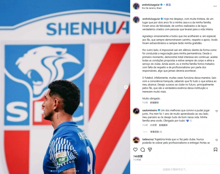 直播吧01月02日讯 申花在昨日官宣了5名球员离队,其中外助安德烈·路易斯在个东谈主社媒发文,炮轰申花俱乐部的探究景观,而且攻讦俱乐部对他偏激家东谈主不尊重。